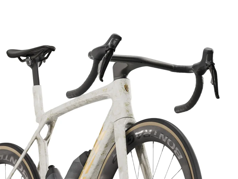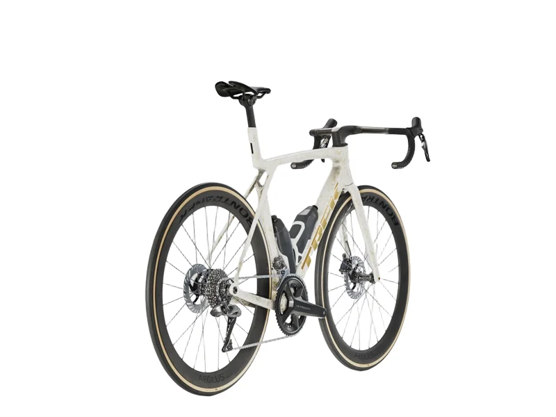 The Madone SLR 7 Gen 8 is a featherlight, ultra-aero road bike built to race. Its 900 Series OCLV carbon frame is not only aerodynamic but also ultralight for conquering climbs. The ultra-lightweight IsoFlow frame technology makes the Madone fast without sacrificing comfort. To give you all the aerodynamic advantages, the Madone SLR comes standard with RSL Aero drums and bottle cages to further reduce drag. This version comes ready to win with a Shimano Ultegra Di2 groupset, carbon wheels, and an integrated Trek Aero RSL handlebar/stem.